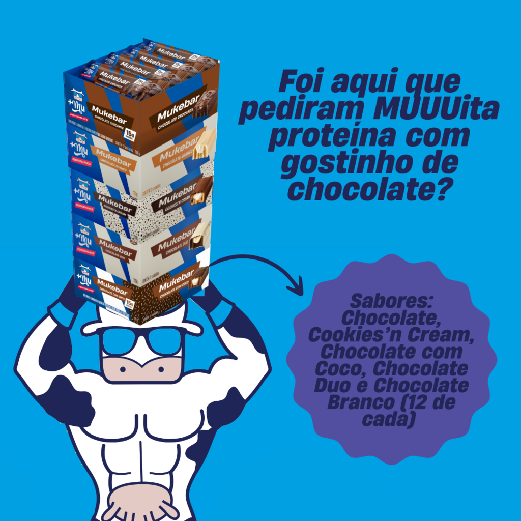 QUANTIDADE: Neste combo, você leva 1 caixa (12 unidades) de cada sabor de Mukebar: Chocolate, Cookies’n Cream, Chocolate com Coco, Chocolate Duo e Chocolate Branco!